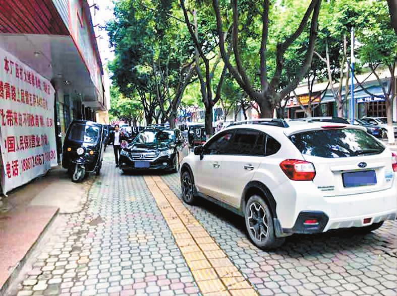 5月28日下午,記者在中心城區文化路與星云路交叉口至文化路與龍泉路交叉口路段發現道路兩旁人行道上違規占道停車現象較為普遍,給市民出行帶來不便。