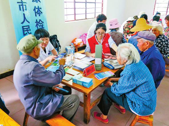 6月8日上午,玉溪市人民醫院20余名醫護人員組成健康義診志愿服務小隊,到澄江縣海口鎮居樂村開展送醫、送藥下鄉免費義診活動。