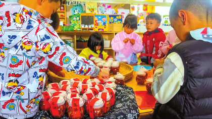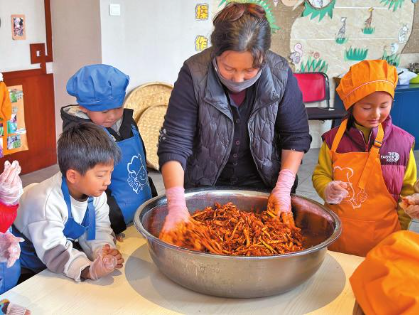 年味是冬日里家家戶戶張燈結彩的喜慶氛圍,是寒冷空氣中彌漫的爆竹聲,是竹竿上晾曬得油潤金黃的臘腸散發出的誘人香氣,是清晨白米粥旁咸香脆口的蘿卜干傳遞的香辣與回味,也是集市上琳瑯滿目、熱鬧非凡的貨物帶來的熱鬧與喧囂。對玉溪市第一幼兒園的孩子們來說,年味更是一段從播種到收獲,再到腌制蘿卜干的充實旅程。在老師的帶領下,孩子們制作自己播種、自己收獲的蘿卜,體驗勞動的艱辛與快樂,用一雙雙稚嫩的小手,編織屬于自己的年味記憶。