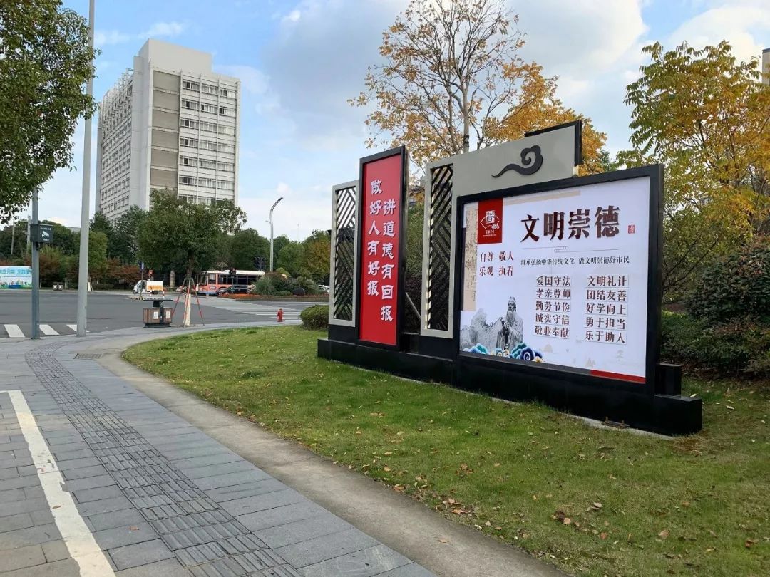 越來越多的地市開始結合本土特色,創新方式方法,讓公益廣告與城市景觀相融合、與歷史文化相承接、與市民欣賞習慣相契合,創新景觀小品、美化工地圍擋、規范戶外視頻,讓每一位市民抬頭可見文明、駐足可觀文明,在全城營造出濃厚的文明氛圍。
